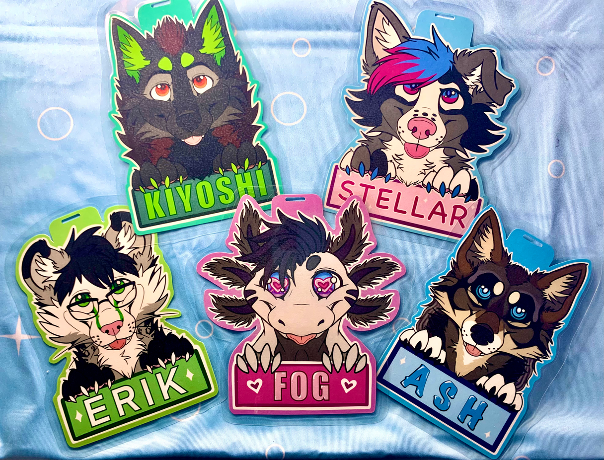 I also have a blast creating unique badge types that can be picked up before the con. At my table, you’ll find lanyards, handmade plushies, stickers, keychains, mystery bags, T-shirts, prints, and premade fursuit parts. My most popular items by far are my badge commissions and sketches—people absolutely love them!